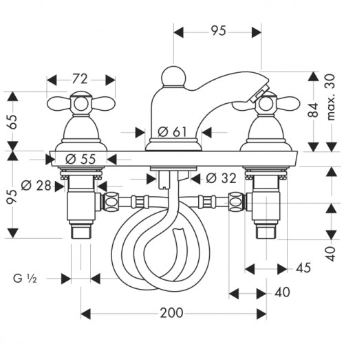 Смеситель для раковины двухвентильный скрытый с донным клапаном Hansgrohe Axor Carlton хром 17123000