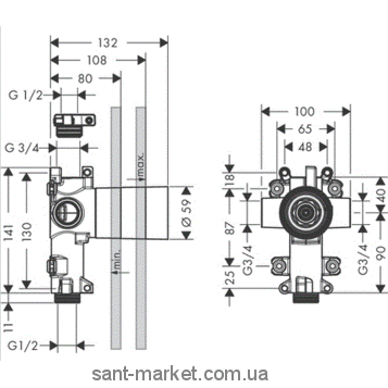 Заказывается отдельно термостат центральный (10932000 HANSGROHE) или (12731000 HANSGROHE)