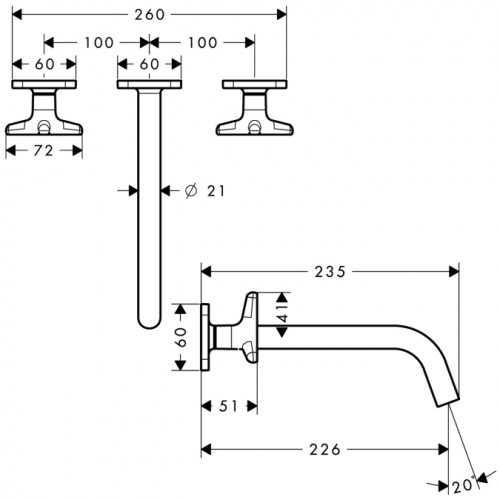 Смеситель для раковины двухвентильный настенный скрытый Hansgrohe Axor Citterio M хром 34217000