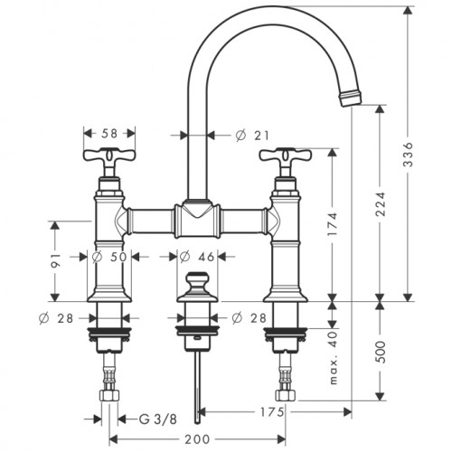 Смеситель для раковины двухвентильный с донным клапаном высокий Hansgrohe Axor Montreux хром 16510000