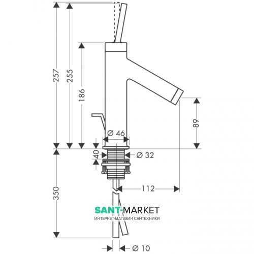 Смеситель для раковины с джойстиком и донным клапаном Hansgrohe коллекция Axor Starck хром 10006000