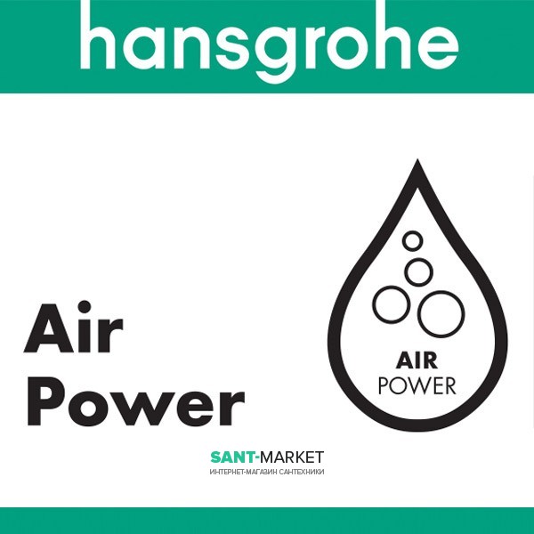 Технология Air Power от Hansgrohe позволяет смешивать воду с воздухом, благодаря чему струящаяся по телу вода дарит ощущение блаженства. Ведь вода, обогащенная воздухом, делает капли объемнее, легче и мягче. Таким образом, становится возможным более эффективное использование воды.