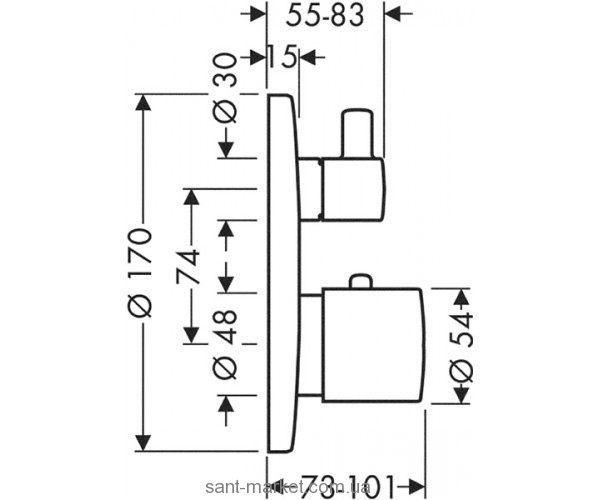 Смеситель с термостатом скрытый (встраиваемый) Hansgrohe коллекция Axor Uno сталь 38720800