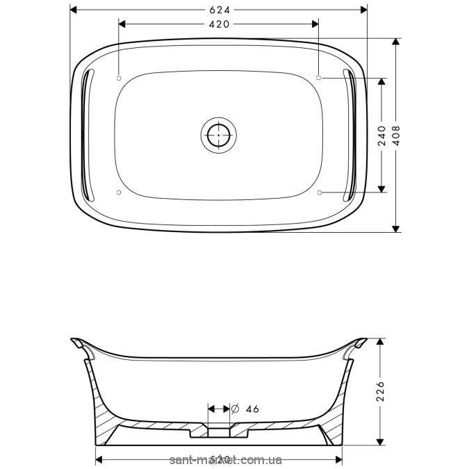 Hansgrohe Axor Urquiola 11300000 Раковина, 625 мм, накладная, только в сочетании со смесителями для раковины без стержня тяги, из минерального литья с гелькоутом.