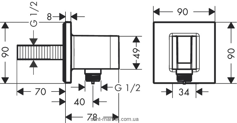 Шланговое подсоединение Hansgrohe Fixfit Porter Square с держателем