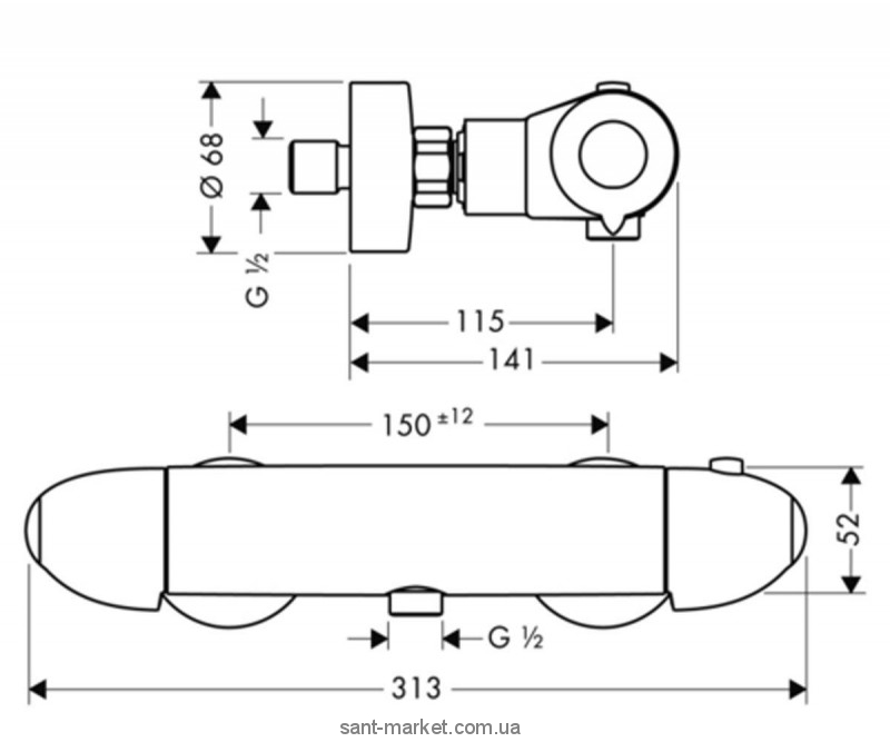 Смеситель для душа настенный двухвентильный с термостатом Hansgrohe Ecomax хром 13356000