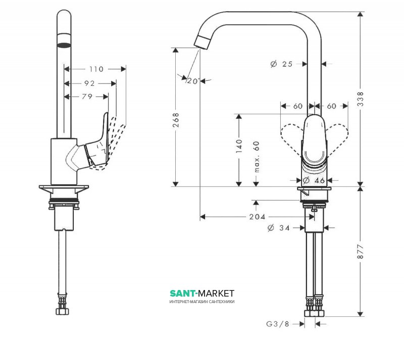 Описание смесителя для кухни Hansgrohe Ecos L (14816000)
