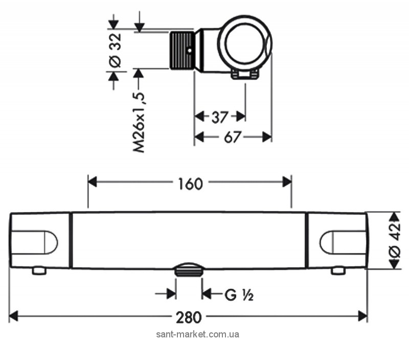 Смеситель для душа настенный двухвентильный с термостатом Hansgrohe Ecostat 1001 SL хром 13274000