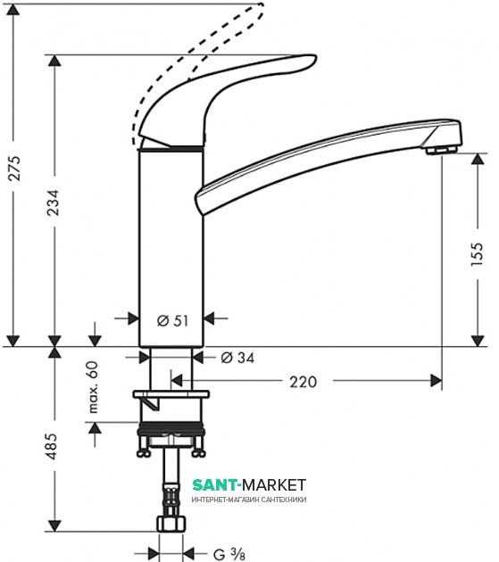 Описание смесителя для кухни Hansgrohe Focus E (31784000):