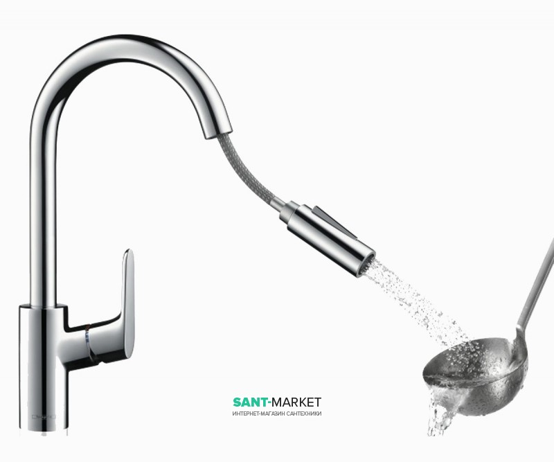 Смеситель для кухни с выдвижной лейкой Hansgrohe Focus однорычажный 31815800