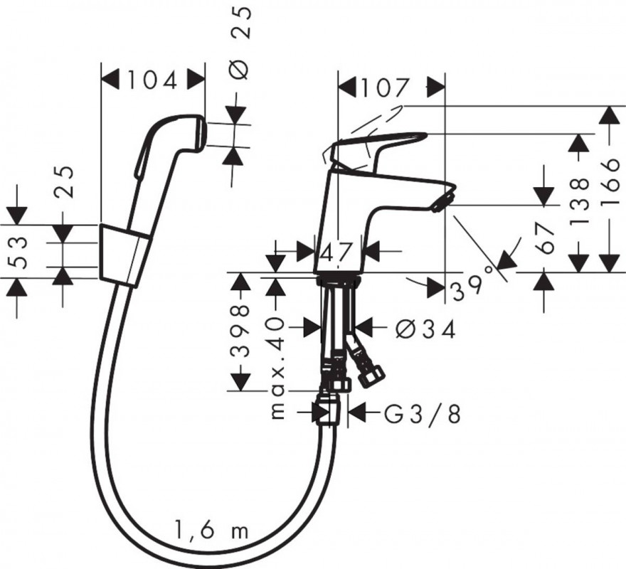 Смеситель для раковины однорычажный с душем Hansgrohe коллекция Logis хром 71290000