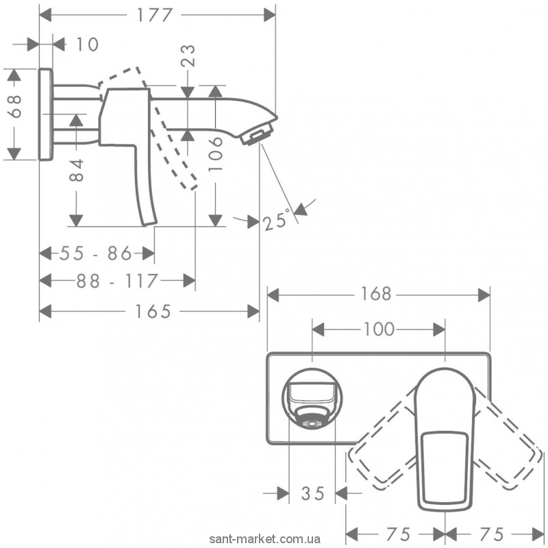 Смеситель для раковины однорычажный настенный скрытый Hansgrohe Mediano 2 хром 14518000