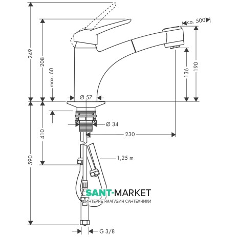 Описание смесителя для кухни Hansgrohe Metropol E (14842000)
