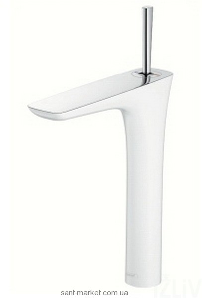 Смеситель для раковины с джойстиком с донным клапаном высокий Hansgrohe PuraVida хром/белый 15066400
