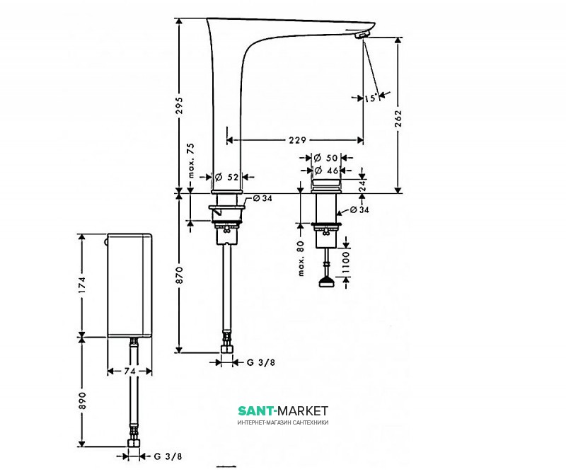 - монтажный бокс с электронной регулировкой температуры и количества воды