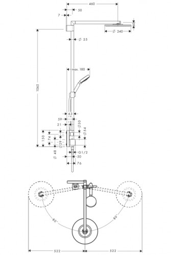 Hansgrohe Raindance Raindance Showerpipe 240 держатель душа 460 мм СМ ½’ 27145000