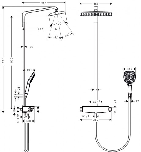 - в набор входят: верхний душ Raindance E Air 1jet, 360x190 мм