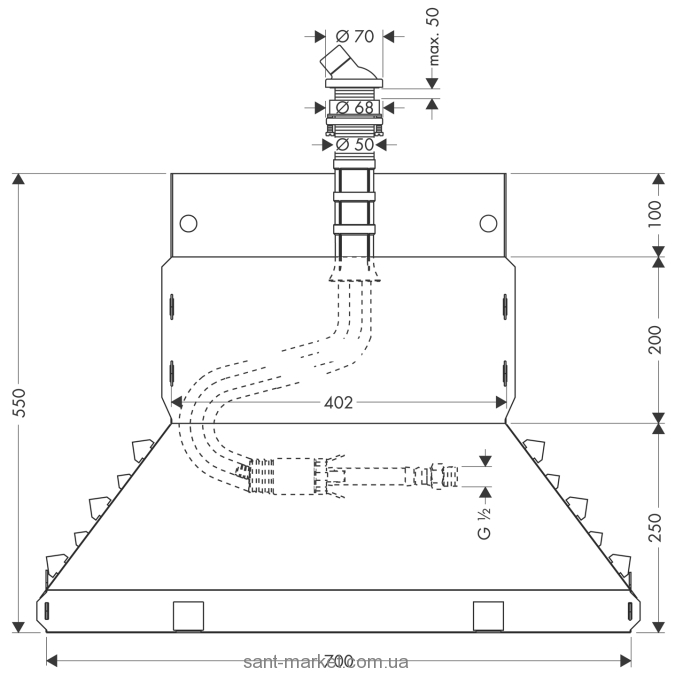 · не подходит для ручного душа Axor Starck, отверстие на ванне Ї 50 мм;