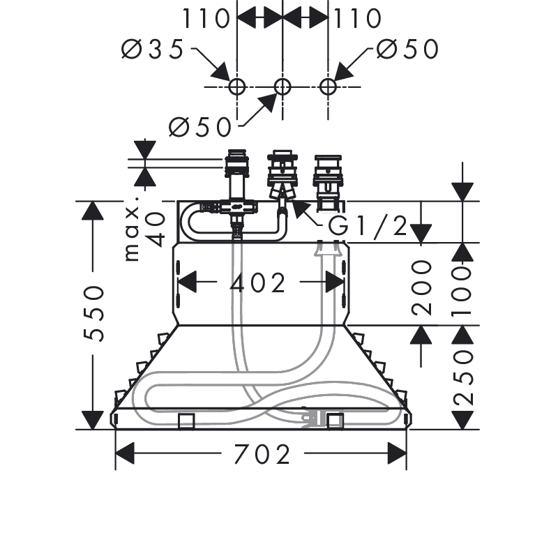 Скрытая часть однорычажного смесителя Hansgrohe на 3 отверстия