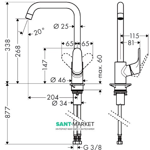 Описание смесителя для кухни Hansgrohe Focus New (31820800)