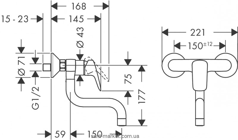 Настенный смеситель для кухни Hansgrohe коллекция Logis однорычажный 71836000
