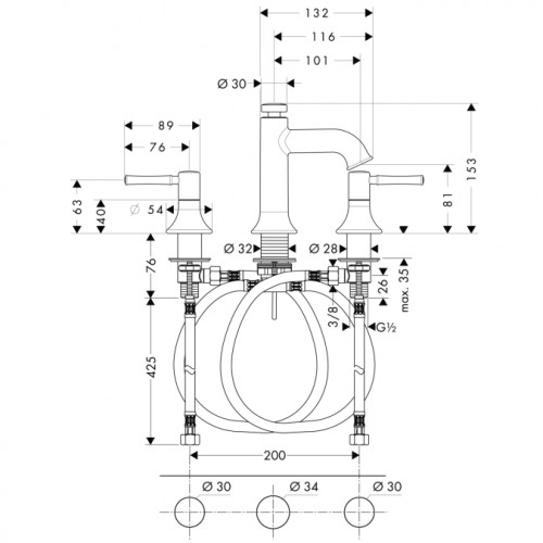 Смеситель для раковины двухрычажный с донным клапаном Hansgrohe Talis Classic хром 14113000