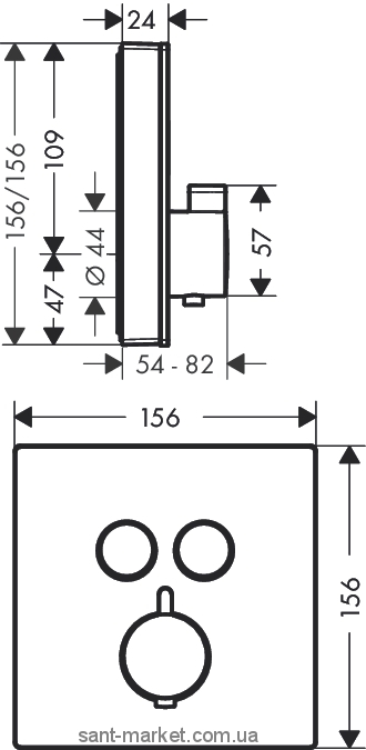 Смеситель с термостатом скрытый (встраиваемый) Hansgrohe коллекция Shower Select черный 15738600