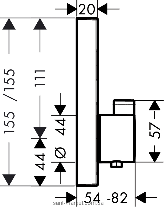 Смеситель для душа встраиваемый с термостатом Hansgrohe коллекция Shower Select хром 15762000