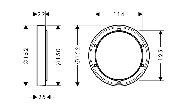 - подходит ко всем наружным частям смесителей для душа и для ванны Ø 150 мм.