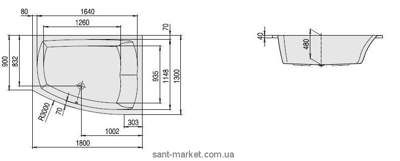Ванна акриловая прямоугольная Hoesch коллекция Largo 180х130х64 R 3693