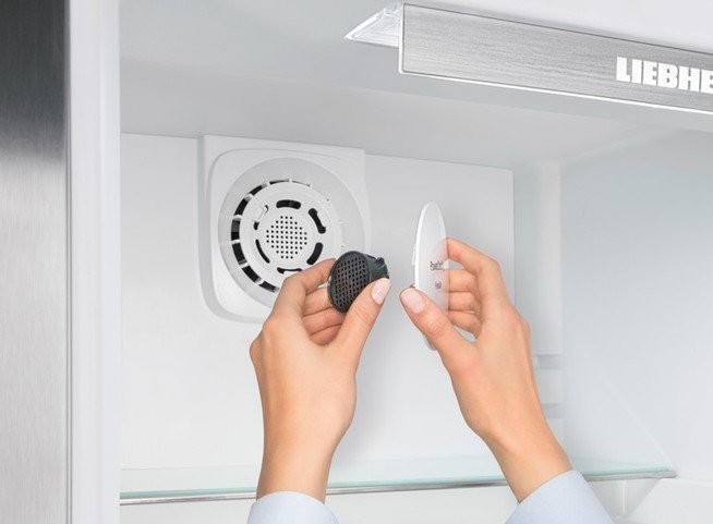 Высокопроизводительная система PowerCooling обеспечивает быстрое охлаждение свежих продуктов при равномерной температуре во всем внутреннем пространстве. Фильтр с активированным углем FreshAir, встроенный в вентилятор, очищает воздух и препятствует образованию неприятных запахов. Специальная функция в системе управления напоминает о времени замены фильтра.