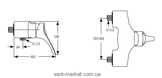 Смеситель для душа настенный однорычажный Ideal Standard коллекция Ceramix 60 хром А3828АА