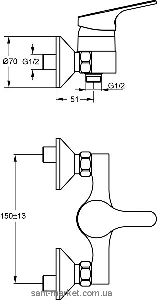 Смеситель для душа настенный однорычажный Ideal Standard коллекция Slimline II хром B8586AA