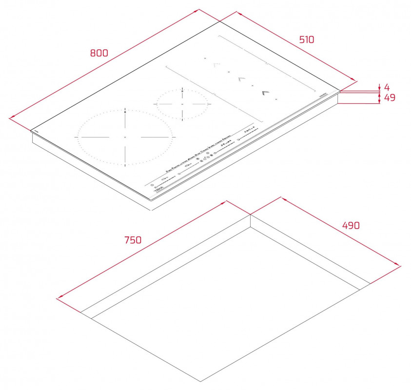 - 2 Flex зоны 263 x 390 мм + 1 Flex зонa (SlideCooking) 253 x 390 мм