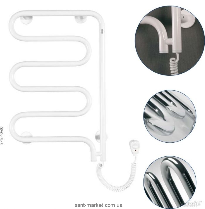 Электрический полотенцесушитель Instal-projekt Stick Electro 400х625х55 змейка белый SPIE-40/60RC35