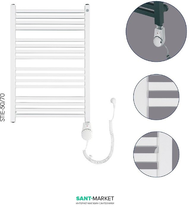 Электрический полотенцесушитель Instal Projekt Stick Electro 500х1480х65-75 лесенка белый STI-50/150+HOTS-06С1