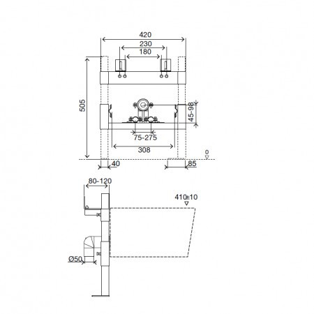 - Планки крепления биде и фанового отвода могут быть расположены в любом месте по высоте инсталляции