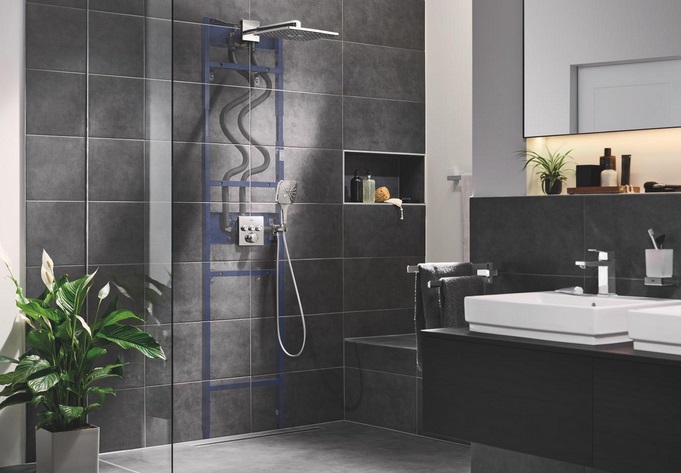 - подходит для скрытых душевых систем с двухрежимными верхними душами в сочетании с GROHE Rapido SmartBox