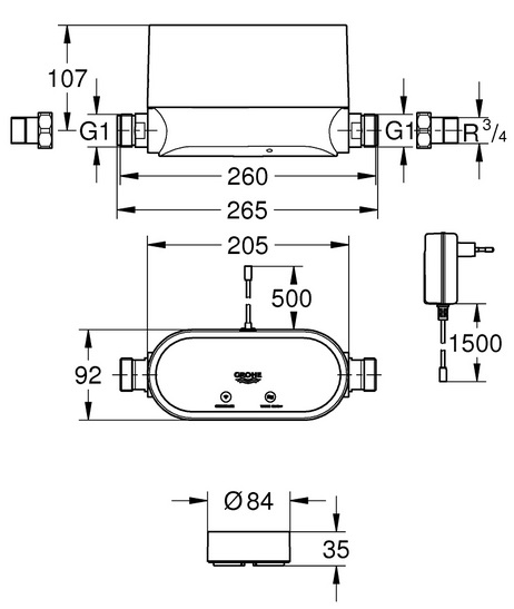 - включая монтажные гайки R3/4 дюйма, удлинительный силовой кабель 0,7 м, штекер типа C