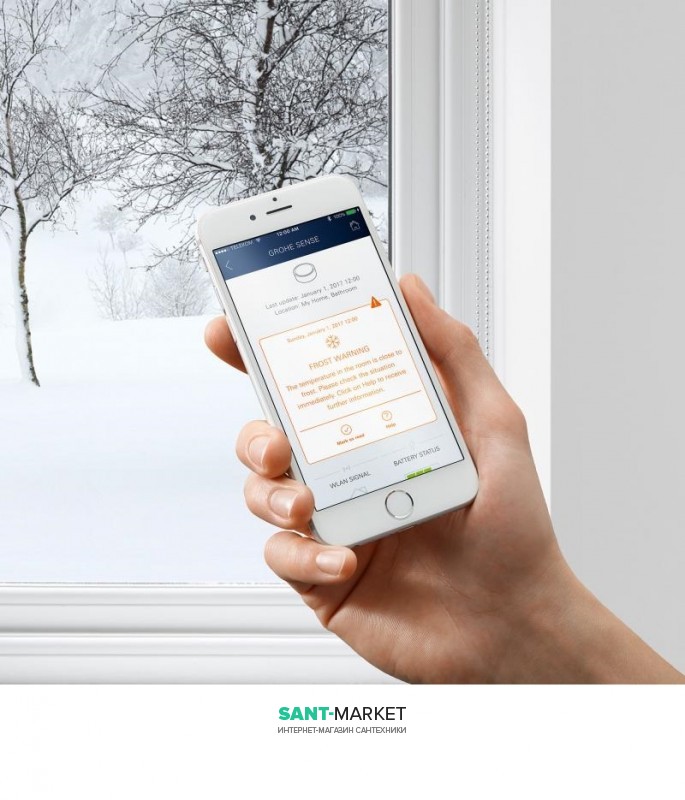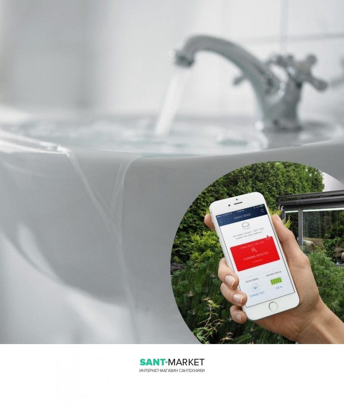 Уведомление через приложение Grohe Ondus: по сигналу тревоги, мигающему свету, звуку, push-сообщению или электронной почте (Grohe AquaAlarm)