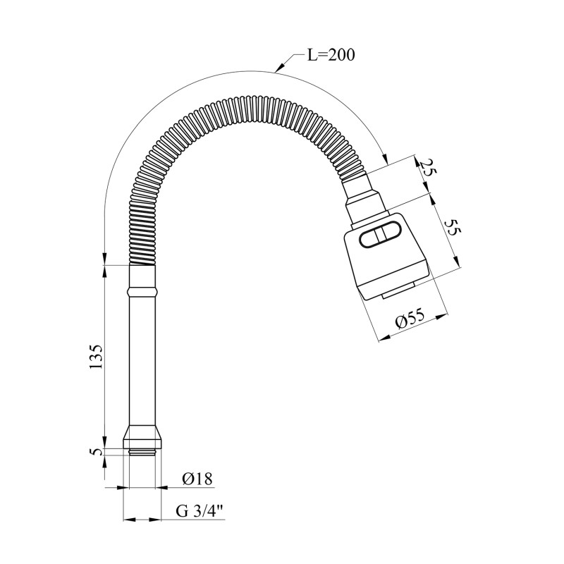 Излив для смесителя Kroner KRM C801 гибкий 2 режима нержавеющая сталь хром CV008582