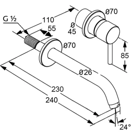 1) Излив для смесителя настенного монтажа для раковины Kludi латунь хром