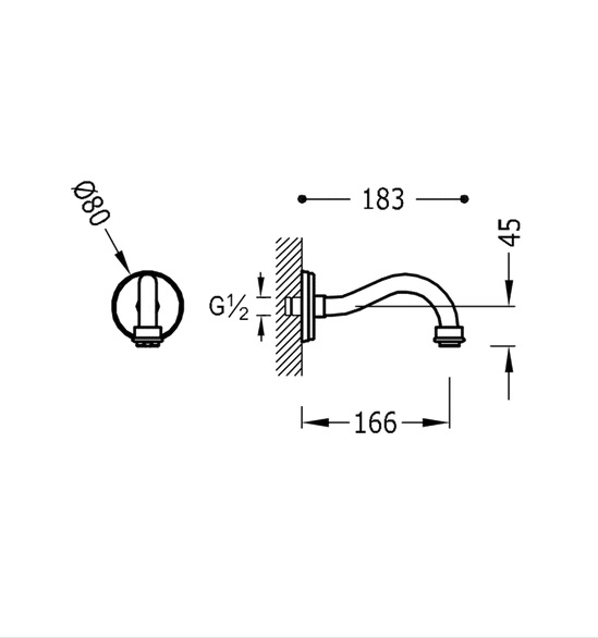 1) Излив для смесителя Tres Tres-Clasic настенный 165 мм состаренная латунь матовая