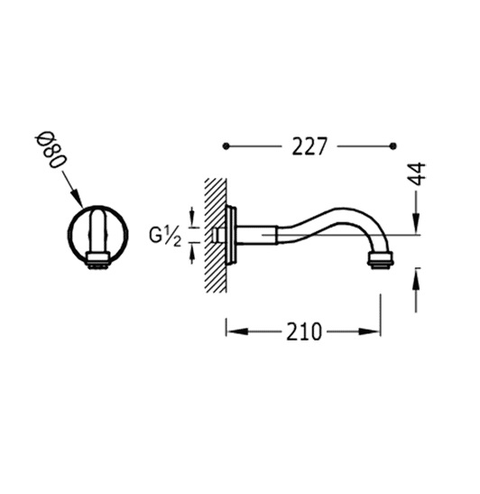 1) Излив для смесителя Tres Tres-Clasic настенный 210 мм состаренная латунь матовая
