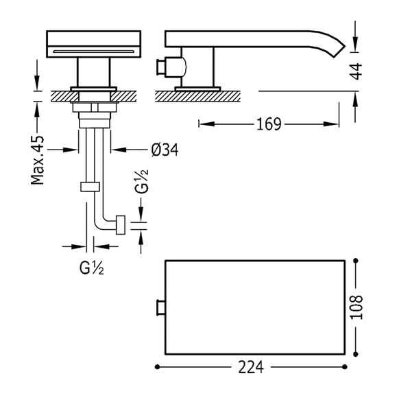 1) Излив для установки на борт ванны Tres каскадный хром