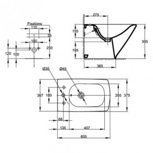 Биде напольное Jacob Delafon коллекция ESCALE 61х38х40 с переливом E1293-00