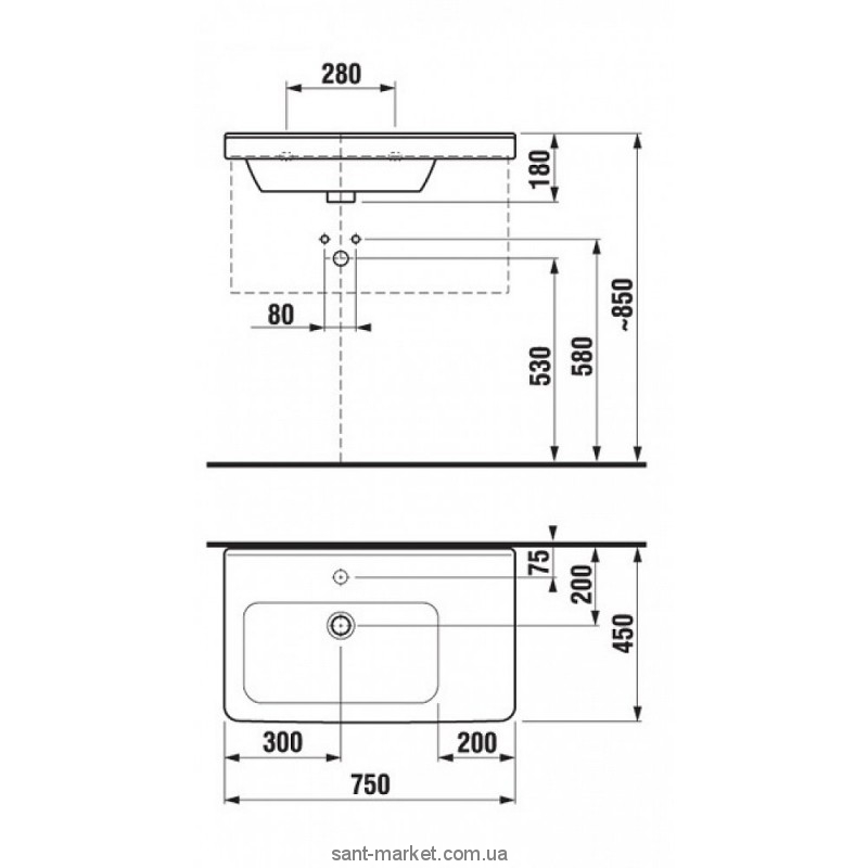 Раковина для ванной подвесная с полкой чаша слева Jika коллекция Cubito 75x18x45 белая H8124220001041