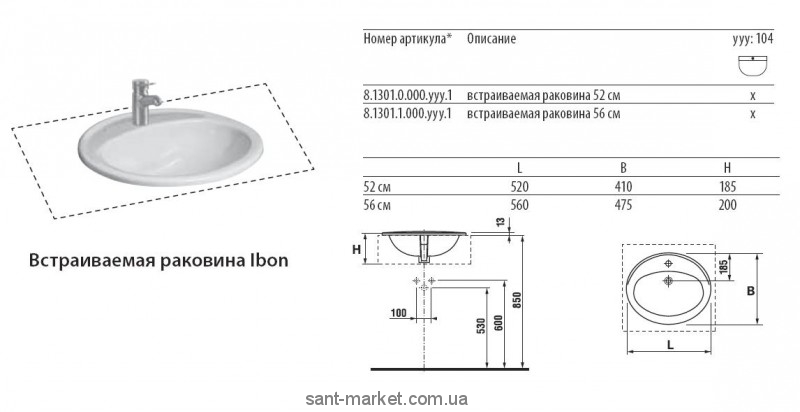 Раковина для ванной встраиваемая Jika коллекция Ibon 52x18.5x41 белая H8130100001041