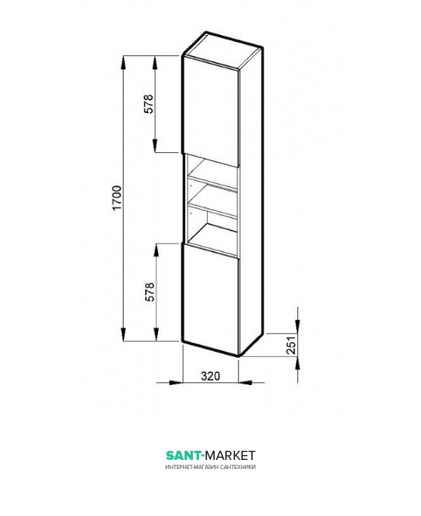 Размеры (ВхШхГ): 1700 х 320 х 251 мм