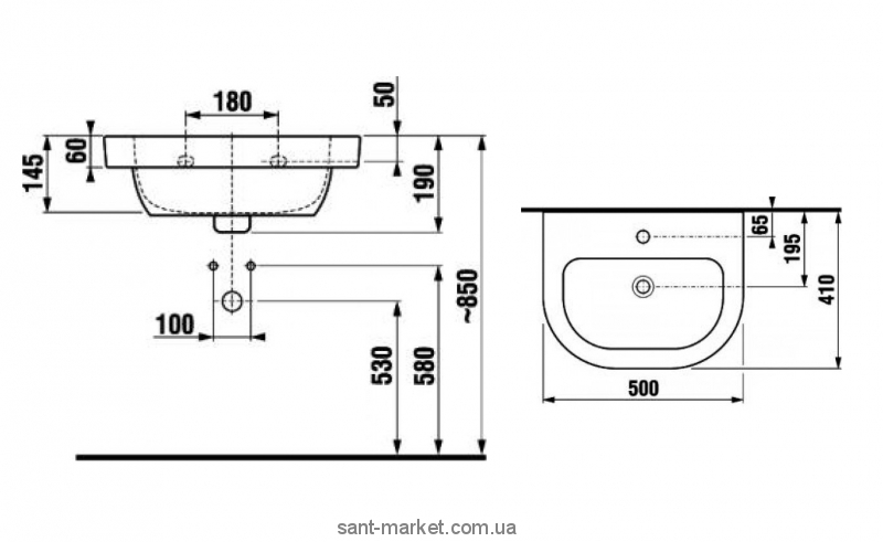 Габариты раковины (ВхШхГ) 19х50х41 см
